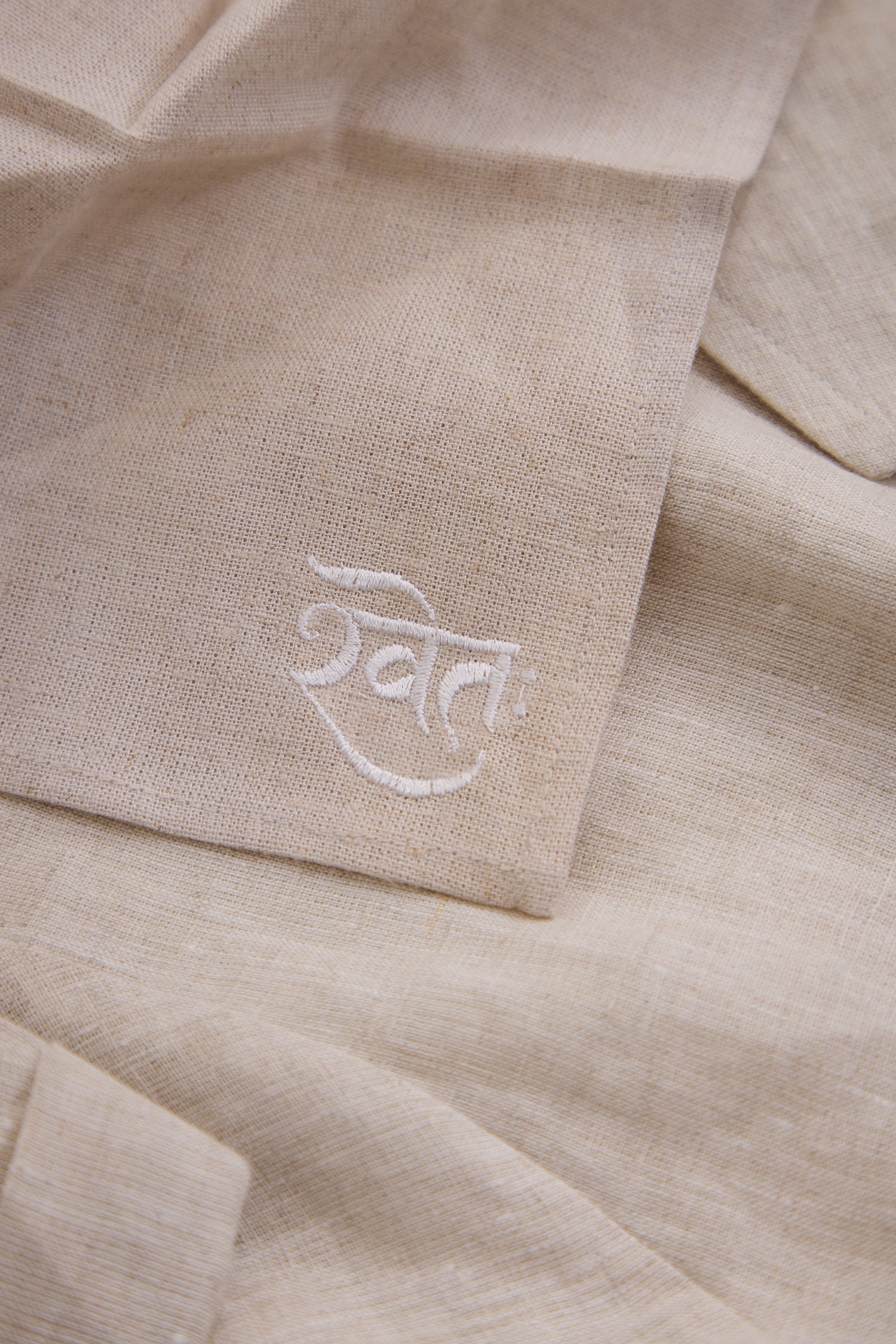 Crafted in beige linen, this pocket square is lightweight and breathable, offering an effortless accent to tailored looks. Subtle Shavet embroidery in white sits at the right bottom corner, adding a signature mark without drawing attention away from the whole.